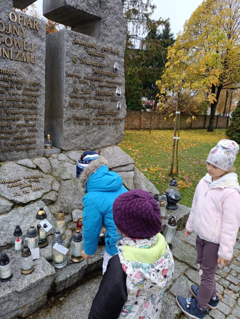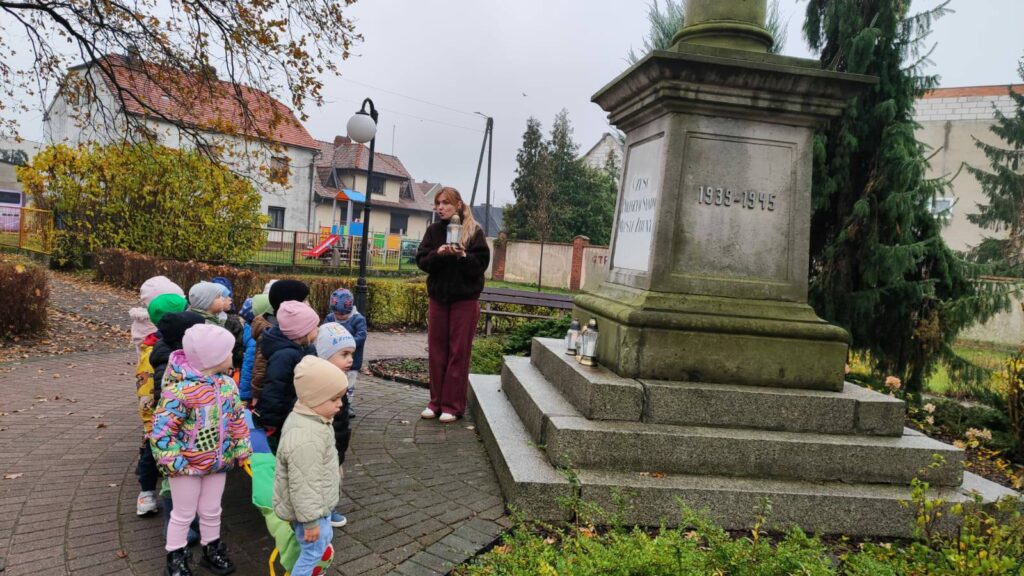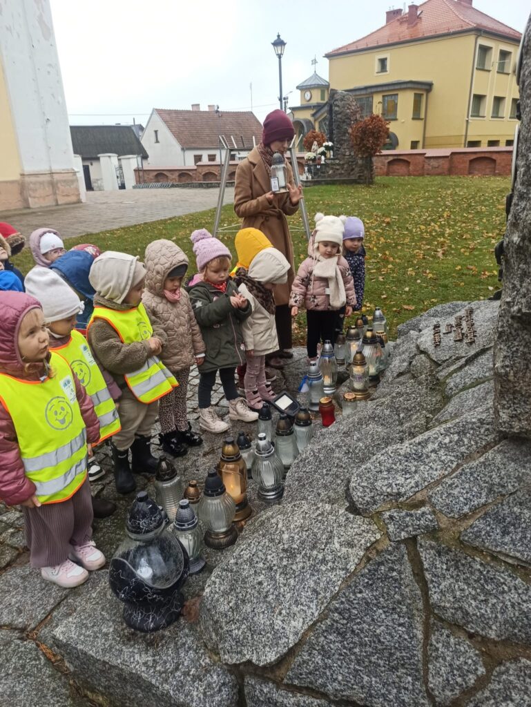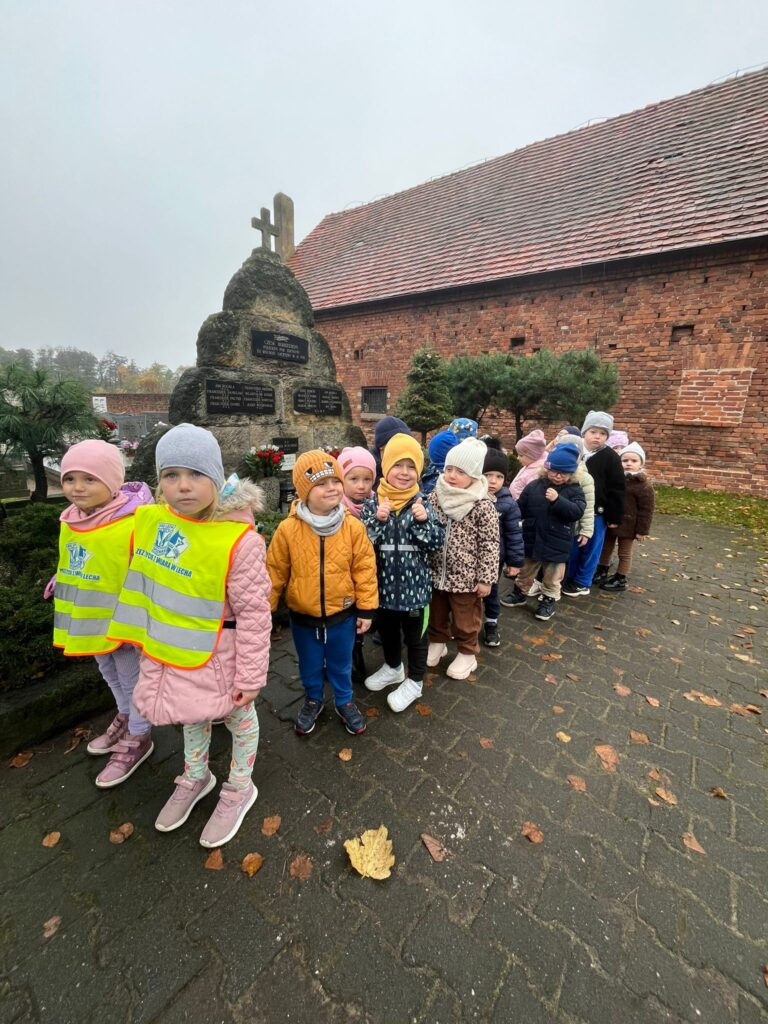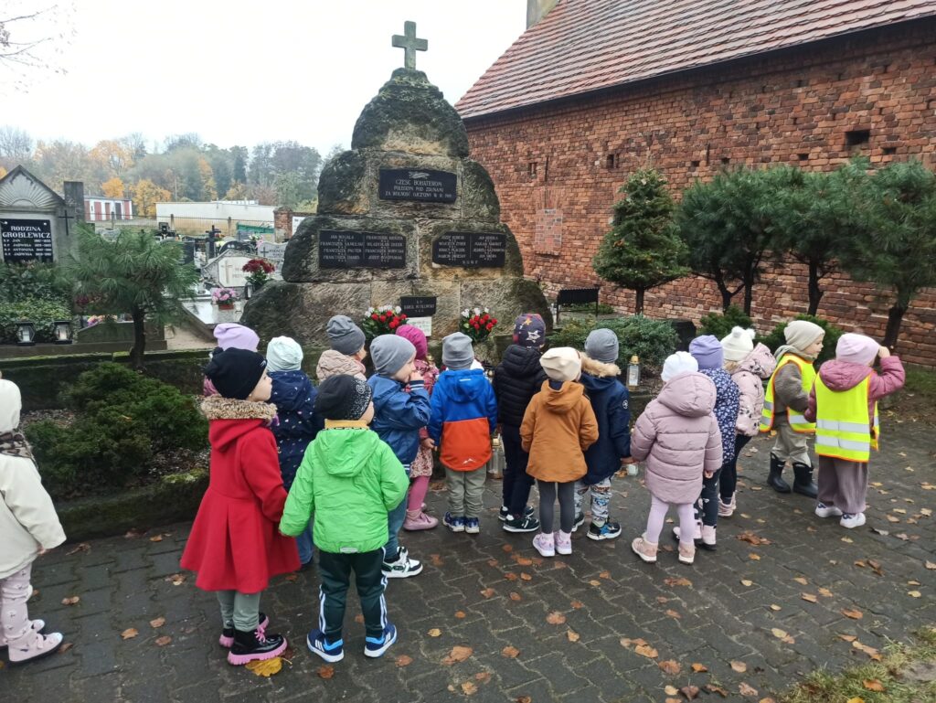 Pamiętamy! W nawiązaniu do Święta Zmarłych oraz zbliżającego się Święta Niepodległości nasze przedszkolaki odwiedziły pobliski cmentarz oraz ważne miejsca pamięci. Celem wizyty było oddanie hołdu poległym żołnierzom , a także zapalenie zniczy i chwila zadumy nad grobami zmarłych. Dzieci były skupione , doskonale wiedziały jak należy się zachowywać w takim miejscu. Staramy się uczyć dzieci okazywania szacunku osobom, które od nas odeszły, a także pokazujemy, jak ważne jest zachowanie o nich pamięci. To była cenna lekcja wychowania rodzinnego, obywatelskiego i patriotycznego.