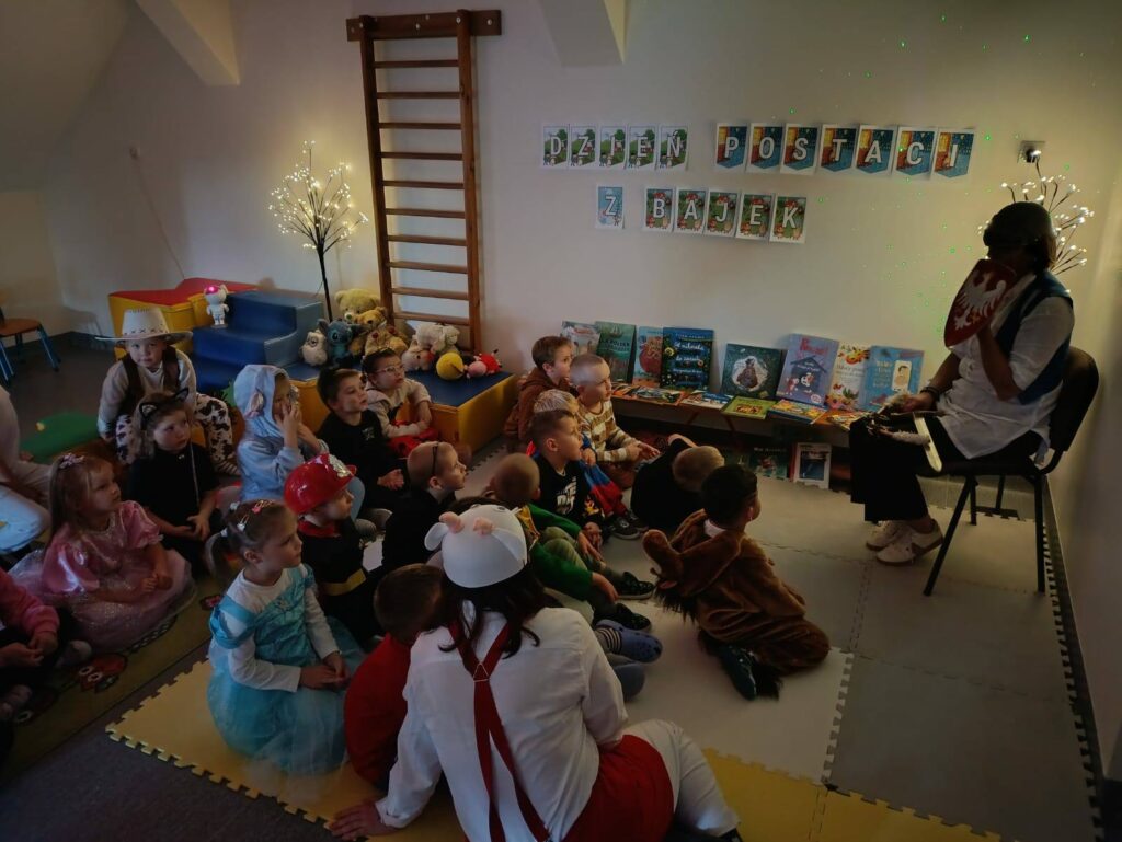 Kolejna przygoda z programu ,,Z książką w plecaku” już za nami. Z okazji Dnia Postaci z Bajek odwiedzili nas aktorzy Teatru im. Wojciecha Bogusławskiego w Kaliszu. Ludzie z pasją dla których aktorstwo to nie tylko zawód – Pani Bożena Remelska- Grzybowska i Pan Maciej Grzybowski. Dzieci miały szansę wysłuchać książki ,,Gruffalo” czytanych przez naszych gości. Dowiedziały się, że często boimy się czegoś, czego nie znamy i jak poradzić sobie z lękiem. Po powrocie do przedszkola na dzieci czekały zabawy sensoryczne, których celem było przezwyciężanie lęku i strachu. Przedszkolacy zasiedli do bajkowej uczty, a na zakończenie Dnia Postaci z Bajek obejrzeli przedstawienie pt. ,,Czerwony kapturek” przygotowane przez nauczycielki przedszkola. To był dzień pełen przygód i radości. Dziękujemy naszym wspaniałym gościom za przyjazd oraz pracownikom Zdunowskiego Ośrodka Kultury za udostępnienie sali w Starej Kaflarni.