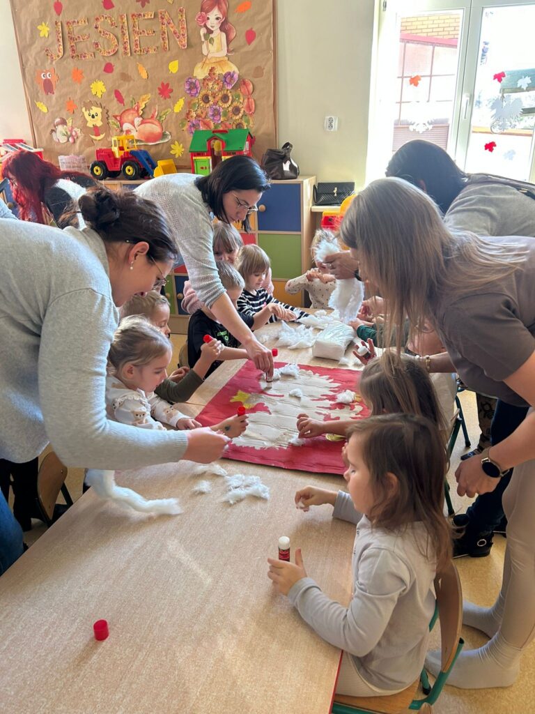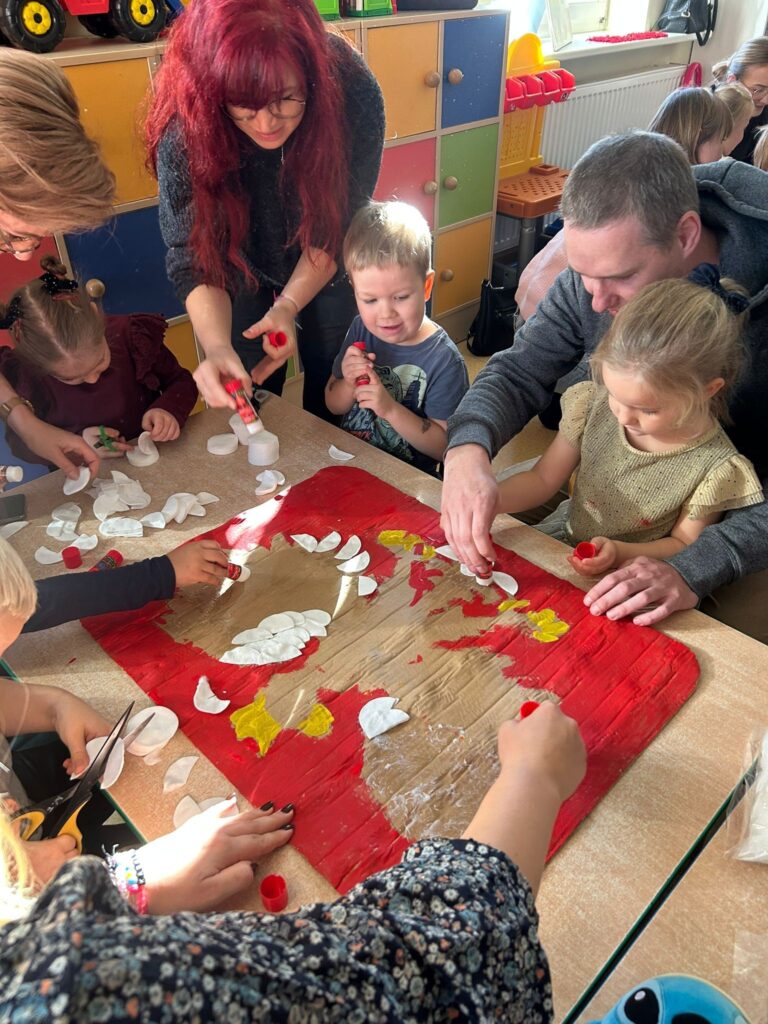 Dziś grupę Pszczoły odwiedziła mama Czarka, Pani Malwina, która podzieliła się z dziećmi swoją pasją do sztuki plastycznej. Opowiedziała o swoich dziełach oraz technikach, które wykorzystuje w swojej twórczości. Dzieci z zachwytem podziwiały jej prace, które były pełne kolorów i kreatywności.Po inspirującej prezentacji, Pani Malwina zaprosiła dzieci do wspólnego tworzenia. Przedszkolaki miały okazję wykazać się swoją wyobraźnią, korzystając z różnych materiałów, w tym cekinów. Z radością tworzyły własne dzieła, które były ozdobione błyszczącymi elementami, nadającymi im wyjątkowy charakter.Wizyta mamy Czarka była nie tylko wspaniałą lekcją sztuki, ale także znakomitą okazją do rozwijania zdolności manualnych i kreatywności. Dziękujemy!
