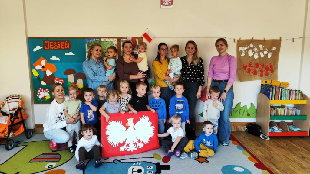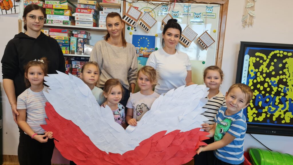 O godzinie 11:11 wybrzmiał Hymn Polski „Mazurek Dąbrowskiego” śpiewany przez całe nasze przedszkole, który pięknie podkreślił poczucie przynależności narodowej.